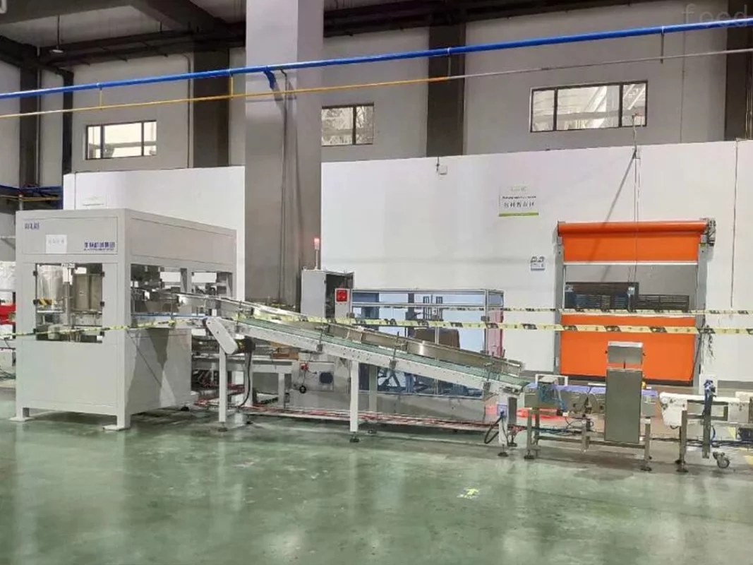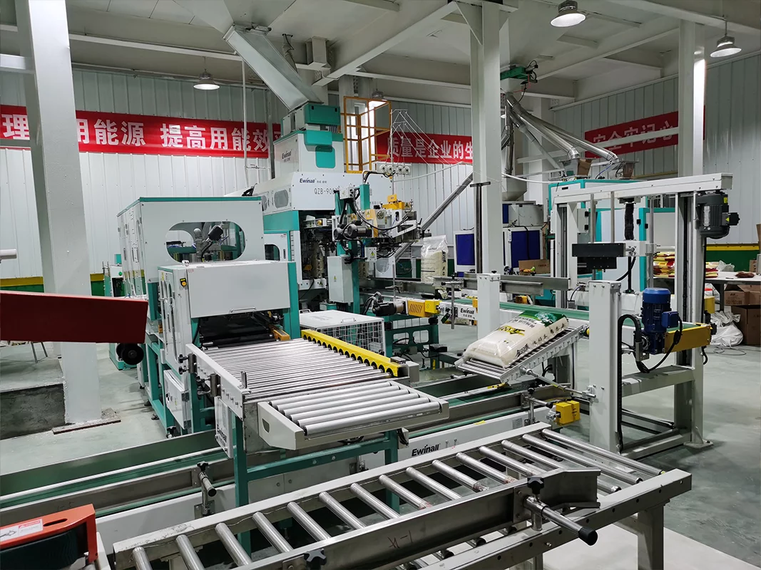 The Weite Electromechanical Equipment Environmental Protection New Material Production Line is a technological achievement industrialization project of superconducting magnetic medium coagulation precipitation technology, and is the first complete set of equipment in the domestic environmental protection field. The production process includes: automatic delivery of raw materials → bag breaking feeding → drying → batching → grinding → magnetic separation → screening → packaging → palletizing → automatic storage and loading of finished products. The finished product packaging line is divided into two specifications: ton bag line and 25-50kg small bag line. A packaging palletizing production line can meet the functions of fully automatic measuring packaging, sewing, shaping and labeling, palletizing, etc. for two specifications of 25kg and 50kg. The automatic loading system is connected to the three-dimensional warehouse to meet the loading needs of various non box vehicles, realizing automatic handling and stacking of goods, saving time, effort, energy and efficiency.